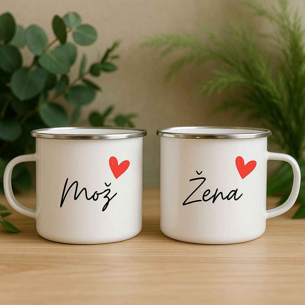 Komplet emajliranih skodelic »Mož in Žena« je čudovit način, da presenetite svojo boljšo polovico ali obdarite par, ki vam veliko pomeni.
