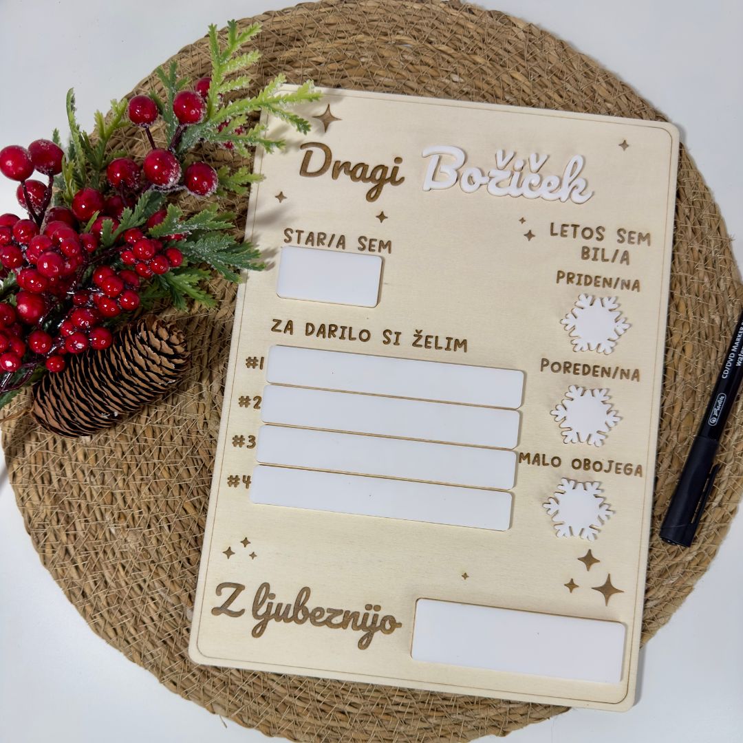 Ta čudovita lesena tabla za Božička je popoln način, da otroci na igriv in srčen način zapišejo svoje želje, starost in povejo, kako pridni so bili skozi leto. 😊