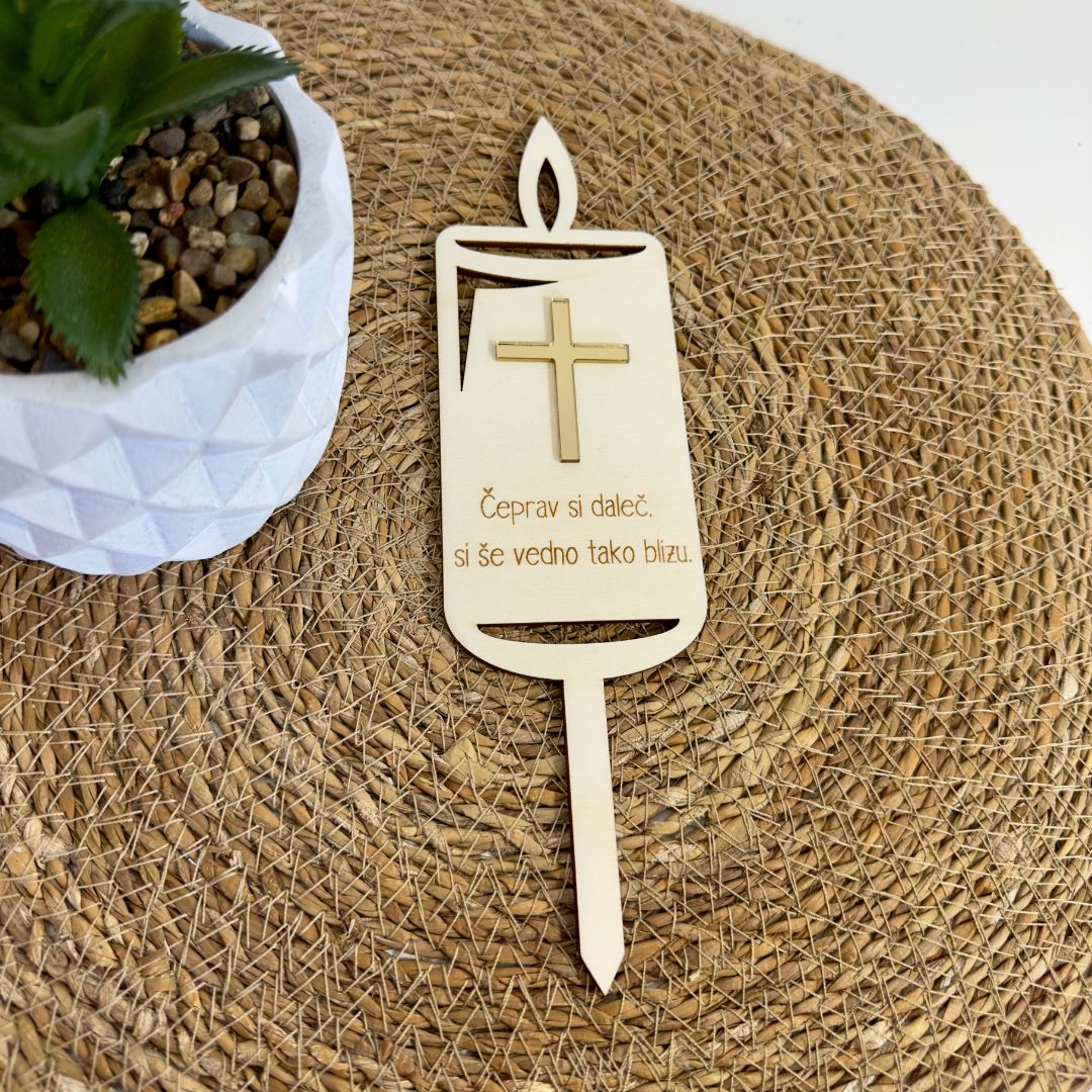 Lesena gravirana sveča za grob je spoštljiva, okolju prijazna in estetsko dovršena alternativa običajnim nagrobnim svečam. Ročno izdelana iz kakovostnega lesa ter lasersko gravirana s posebnim motivom ali napisom po vaši želji, bo ostala trajen opomnik na ljubezen in spomin.
